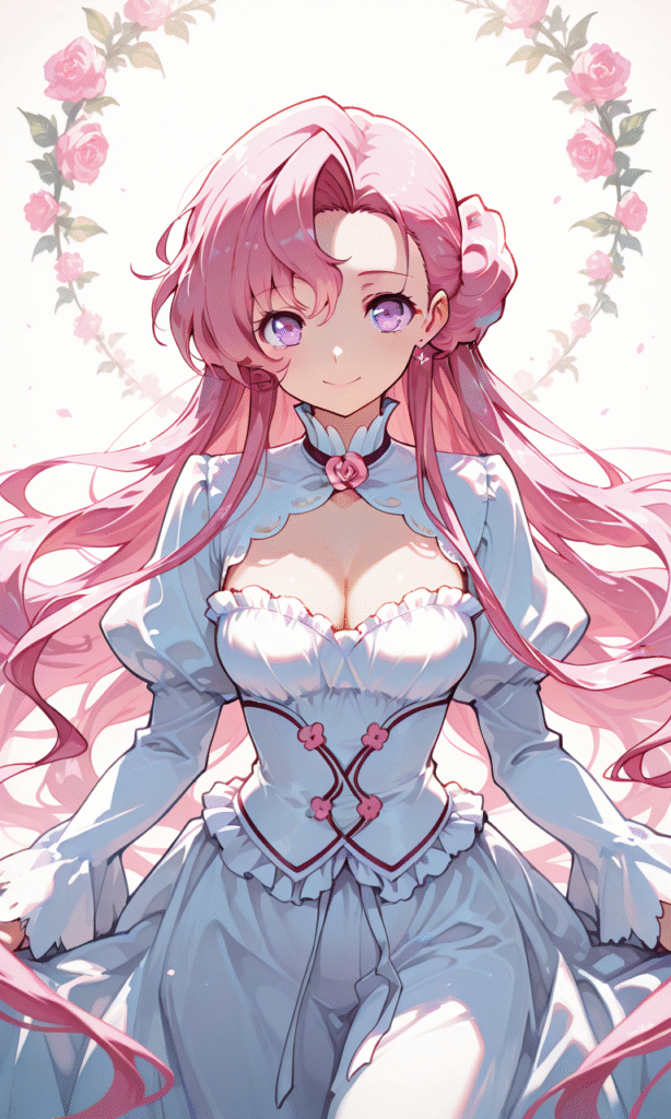 Euphemia li Britannia, smile,cowboy shot,simplebackground,white background, masterpiece,high quality,high resolution ,tokiame,hyper-detailed, high contrast, depth of field, ray tracing, best lighting, cinematic composition, beautiful face, beautiful eyes, sharp focus, (masterpiece:1.2), (best quality:1.2), (very aesthetic:1.2), (absurdres:1.2), (detailed background),
