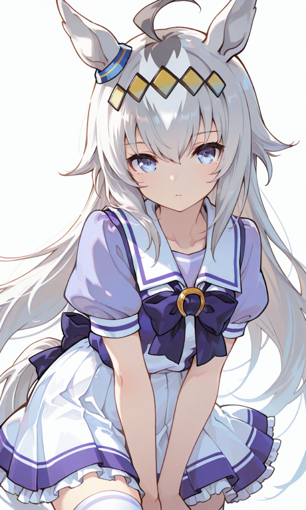 oguri cap (umamusume),tracen school uniform,short sleeves, white thighhighs, expressionless, cowboy shot,simplebackground,white background, masterpiece,high quality, high resolution,tokiame,hyper-detailed, high contrast, depth of field, ray tracing, best lighting, cinematic composition, beautiful face, beautiful eyes, sharp focus, (masterpiece:1.2), (best quality:1.2), (very aesthetic:1.2), (absurdres:1.2), (detailed background),