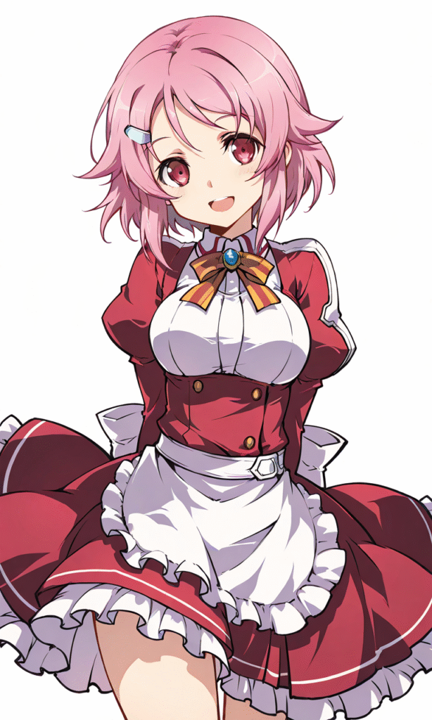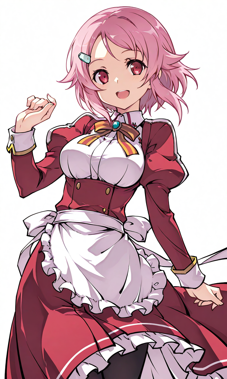 PixAI【Shiitake-Mix】lisbeth(sword art online), smile, open mouth, cowboy shot, simple background, white background, masterpiece, high quality, high resolution, tokiame, tokiame