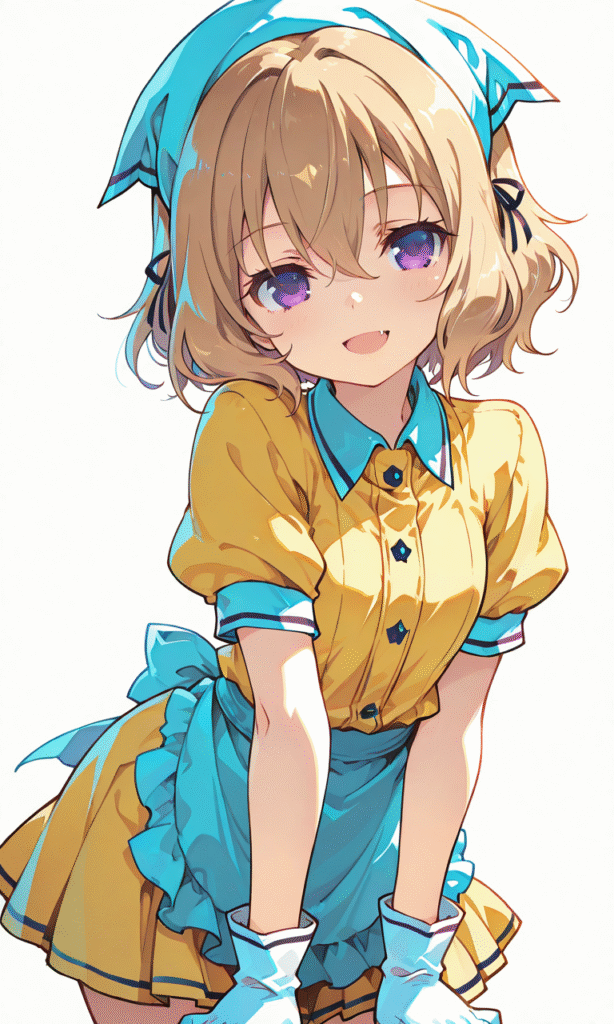 PixAI【Shiitake-Mix】hoshikawa mafuyu(blend s), 1girl, yellow uniform, flat chest, ((hair ornament)), smile, open mouth, cowboy shot, simple background, white background, masterpiece, high quality, high resolution, tokiame, hyper-detailed, high contrast, depth of field, ray tracing, best lighting, cinematic composition, beautiful face, beautiful eyes, sharp focus, (masterpiece:1.2), (best quality:1.2), (very aesthetic:1.2), (absurdres:1.2), (detailed background)