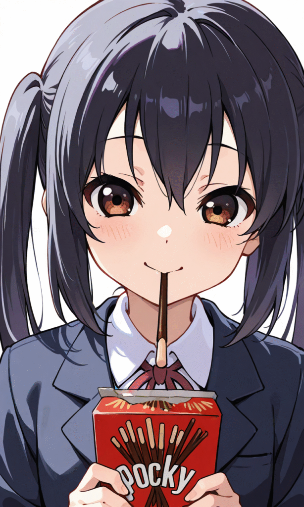PixAI【Shiitake-Mix】nakano azusa, school uniform,blazer, holding pockybox, eating, pocky, smile,open mouth, upper body, looking at viewer, from side,dutch angle, simplebackground,white background, masterpiece,high quality, high resolution ,tokiame,hyper-detailed, high contrast, depth of field, ray tracing, best lighting, cinematic composition, beautiful face, beautiful eyes, sharp focus, (masterpiece:1.2), (best quality:1.2), (very aesthetic:1.2), (absurdres:1.2), (detailed background),