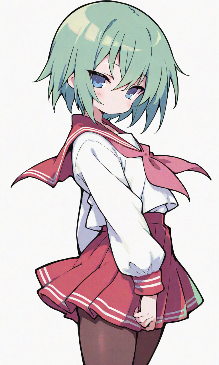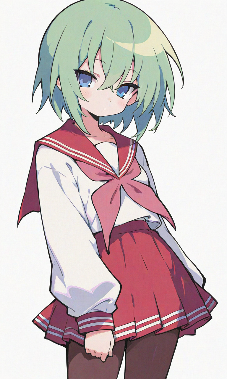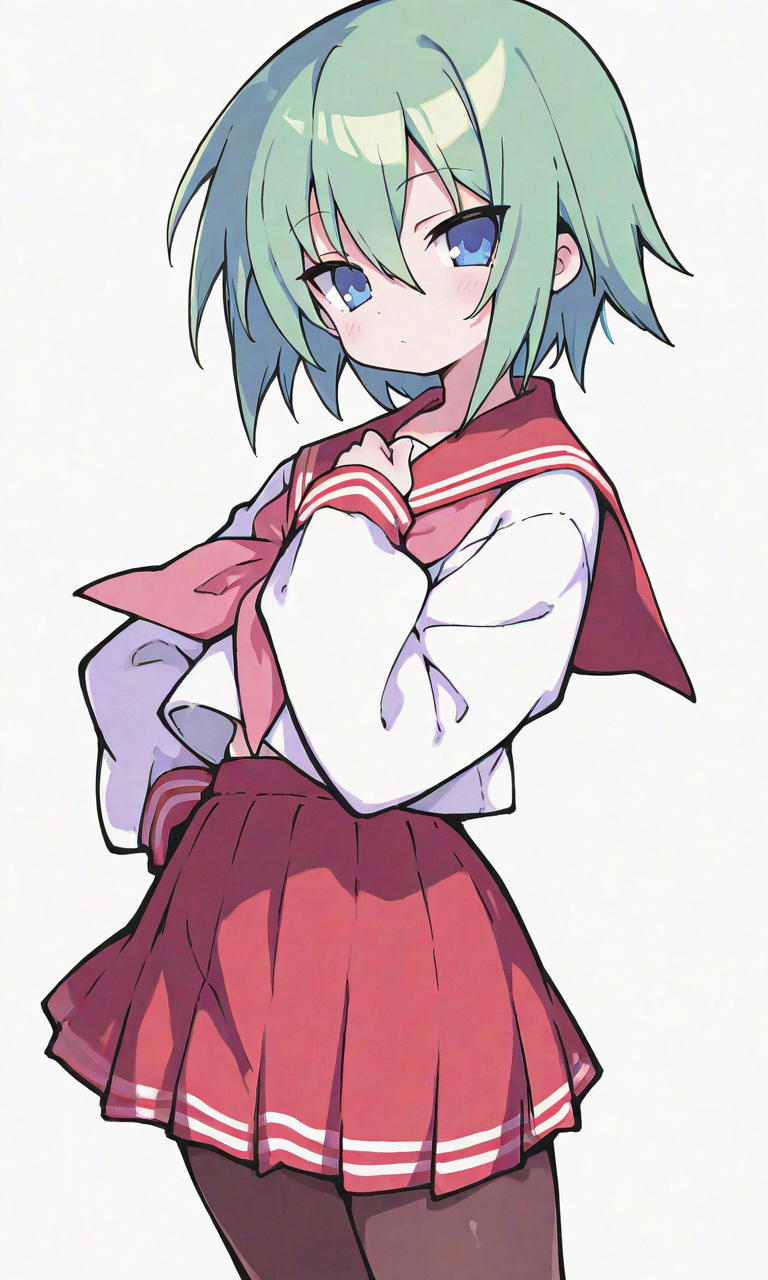 PixAI【Shiitake-Mix】iwasaki minami(lucky star),short hair, serafuku,long sleeves,red sailorcollar,red miniskirt,pantyhose, looking at viewer, cowboy shot,simplebackground,white background, masterpiece,high quality, high resolution,tokiame,high-res