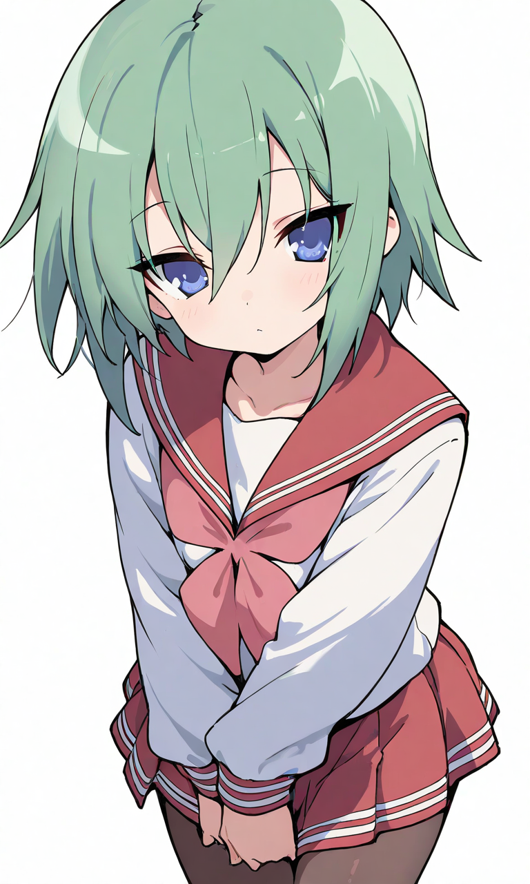 PixAI【Shiitake-Mix】iwasaki minami(lucky star),short hair, serafuku,long sleeves,red sailorcollar,red miniskirt,pantyhose, looking at viewer, cowboy shot,simplebackground,white background, masterpiece,high quality, high resolution,tokiame,high-res