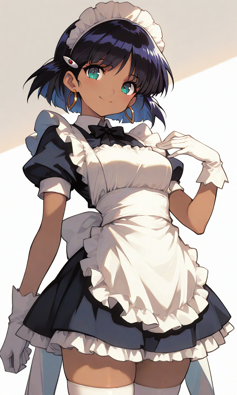 PixAI【Shiitake-Mix】Nadia,maid,short sleeves, white gloves, white thighhighs, smile,cowboy shot,simplebackground,white background, masterpiece,high quality, high resolution,high-res,tokiame,hyper-detailed, high contrast, depth of field, ray tracing, best lighting, cinematic composition, beautiful face, beautiful eyes, sharp focus, (masterpiece:1.2), (best quality:1.2), (very aesthetic:1.2), (absurdres:1.2), (detailed background),