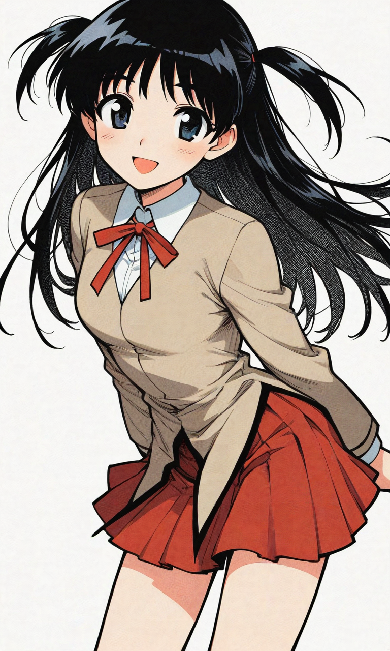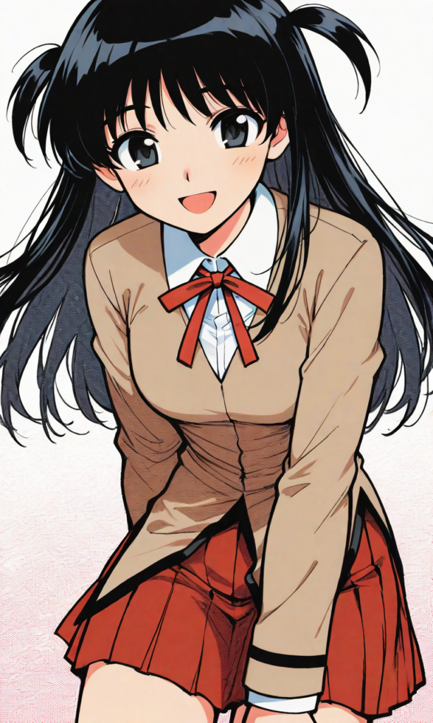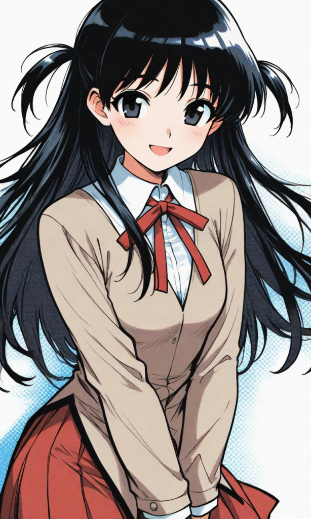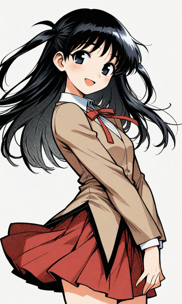 PixAI【Shiitake-Mix】school Rumble,tsukamoto tenma, smile,open mouth, long hair, two side up,black hair, no hair ornament,school uniform, long sleeves, smile,open mouth,looking at viewer, cowboy shot,simplebackground,white background, masterpiece,high quality, high resolution,high-res,manga-texture, tone-art-style, dot-manga-style, screentone texture, halftone shading, printed texture