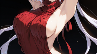 PixAI【Shiitake-Mix】hoshizora rin, cozy beige knit sweater, high-waisted brown pleated skirt, dark red scarf, black ...