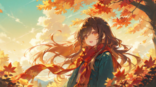 PixAI【Shiitake-Mix】A gentle autumn breeze flows through a golden field at dusk,brown hair, Crimson and ambe...