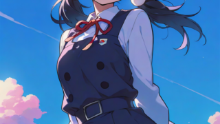 PixAI【Shiitake-Mix】girl,brown hair, blunt bangs, half up,bow hairribbon,school uniform, gray blazer,buttons, plaid ...