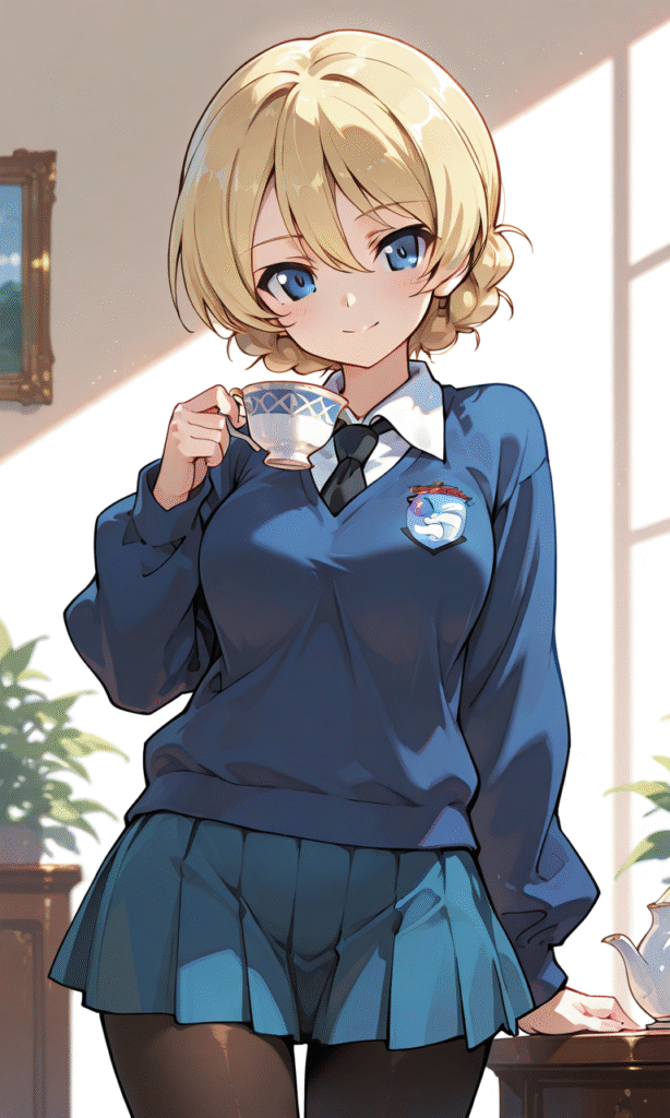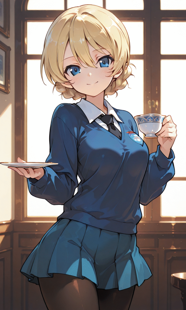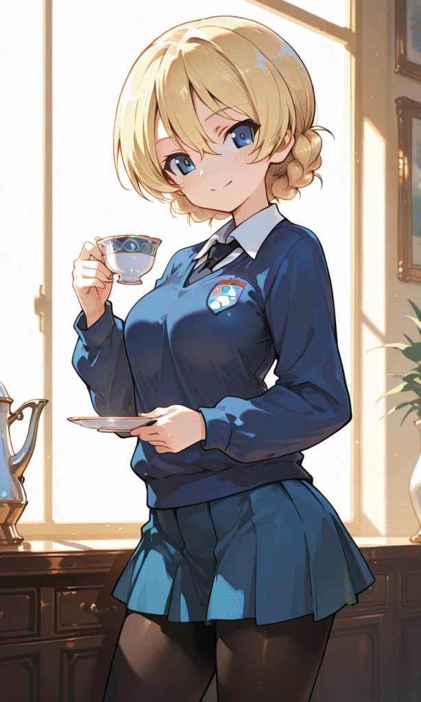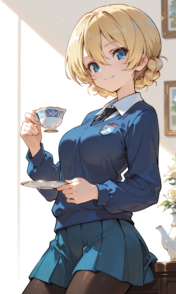 PixAI【Shiitake-Mix】darjeeling (girls und panzer), st. gloriana’s school uniform,pantyhose, smile,teacup, saucer,cowboy shot,simplebackground,white background, masterpiece,high quality, ,tokiame,,hyper-detailed, high contrast, depth of field, ray tracing, best lighting, cinematic composition, beautiful face, beautiful eyes, sharp focus, (masterpiece:1.2), (best quality:1.2), (very aesthetic:1.2), (absurdres:1.2), (detailed background),Anime, moe,john kafka