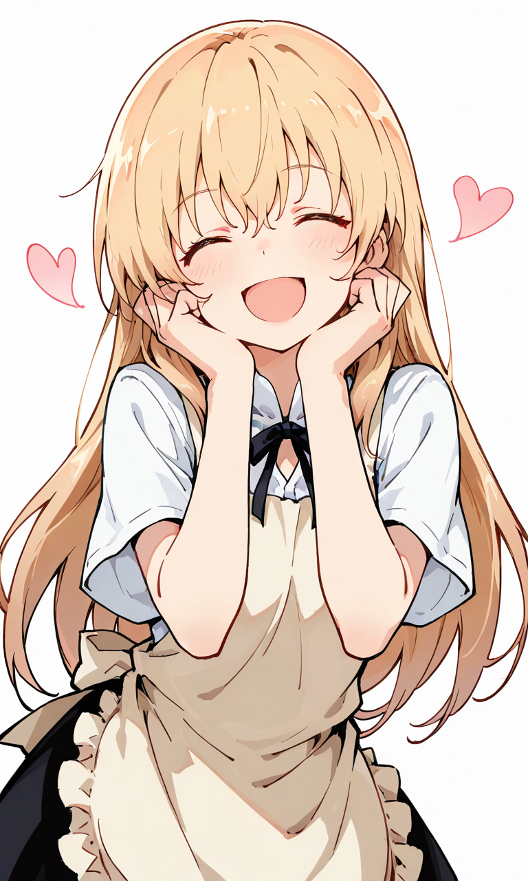 PixAI【Shiitake-Mix】todoroki yachiyo(WORKING!!),long hair,closed eyes, open mouth, hands on own cheeks, smile,happy,cowboy shot,heart, simplebackground,white background, masterpiece,high quality, ,tokiame,748cmstyle