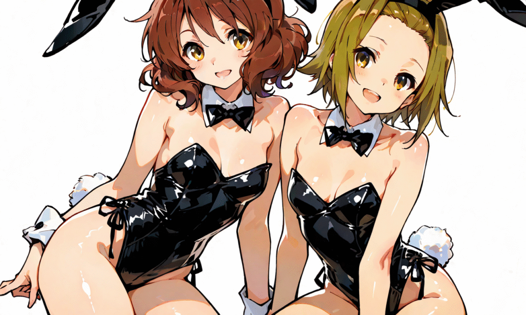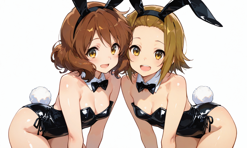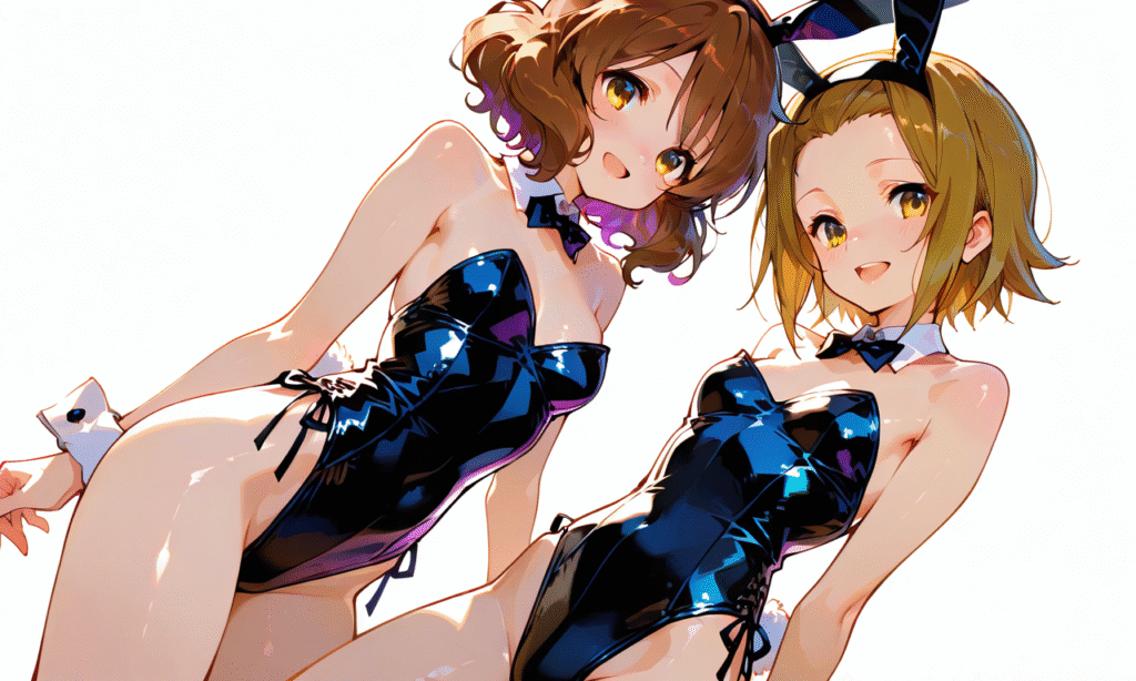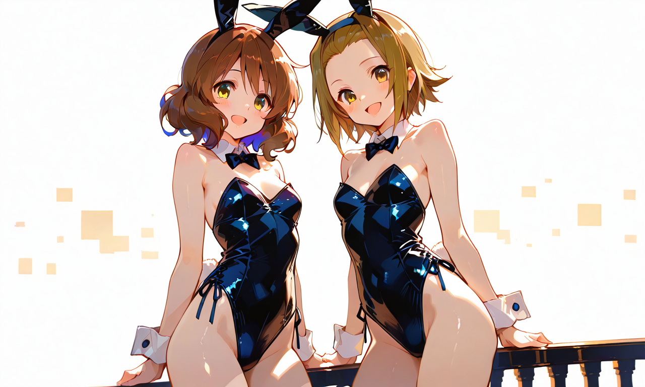 PixAI【Shiitake-Mix】2girls,tainaka ritsu, oumae kumiko, smile,open mouth, bunny girl,cowboy shot,simplebackground,white background, masterpiece,high quality, ,748cmstyle,shiny skin, shiny,tokiame,cinematic lighting , cinematic angle, soft light , color detail, backlighting, Depth of field, long exposure, light steps, intricate colors, vibrant colors,