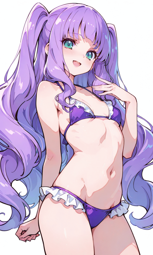 cure majesty, smile,open mouth, bikini,small breast,no hair ornament,twintail,looking at viewer, cowboy shot,simplebackground,white background, masterpiece,high quality, ,tokiame,748cmstyle