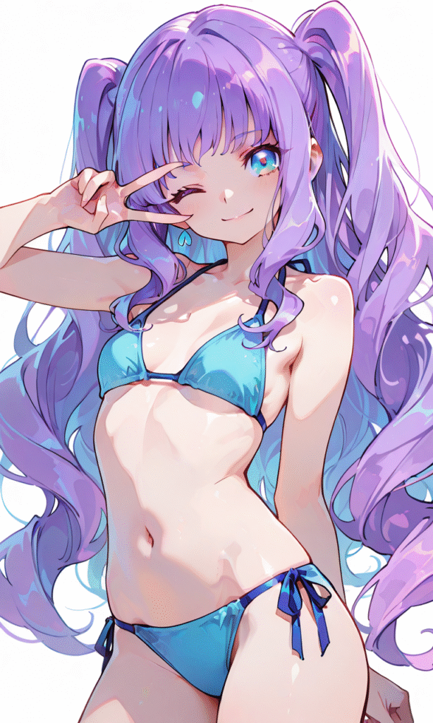 cure majesty, smile,one eye closed, v, bikini,small breast,no hair ornament,twintail,looking at viewer, cowboy shot,simplebackground,white background, masterpiece,high quality, ,tokiame,748cmstyle,hyper-detailed, high contrast, depth of field, ray tracing, best lighting, cinematic composition, beautiful face, beautiful eyes, sharp focus, (masterpiece:1.2), (best quality:1.2), (very aesthetic:1.2), (absurdres:1.2), (detailed background),