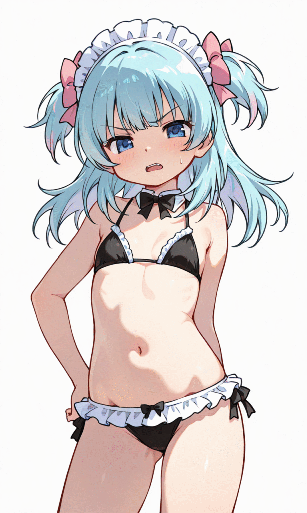 minami rena(madoka magica),loli,solo,two side up,maid bikini,scowl,open mouth, cowboy shot,simplebackground,white background, masterpiece,high quality, ,tokiame