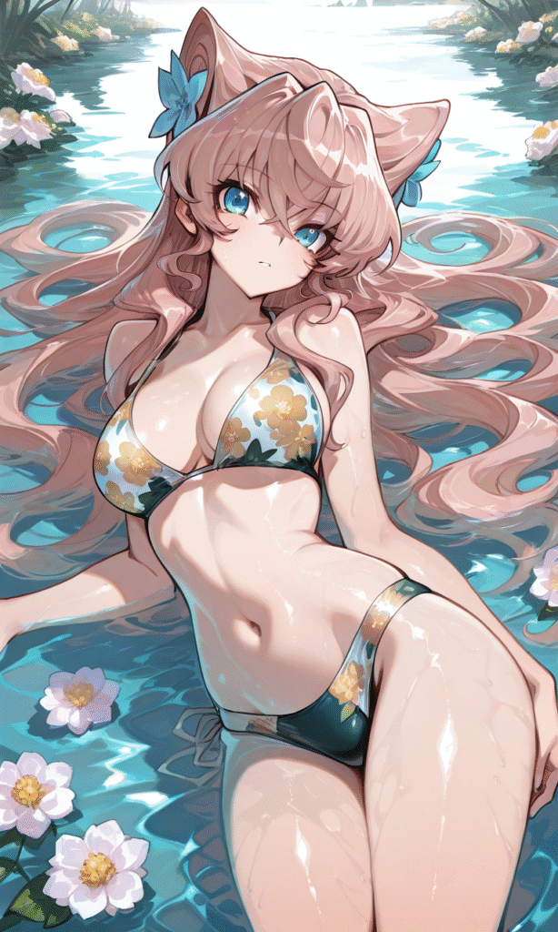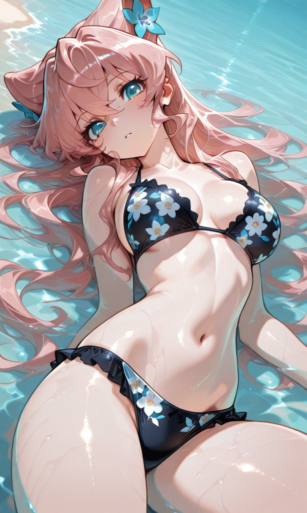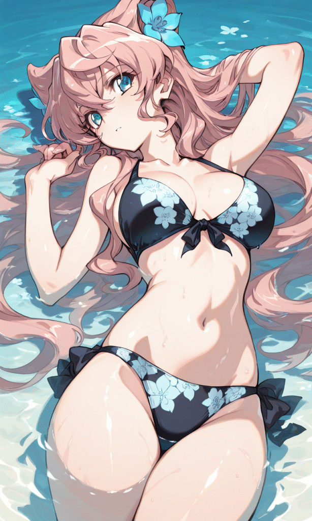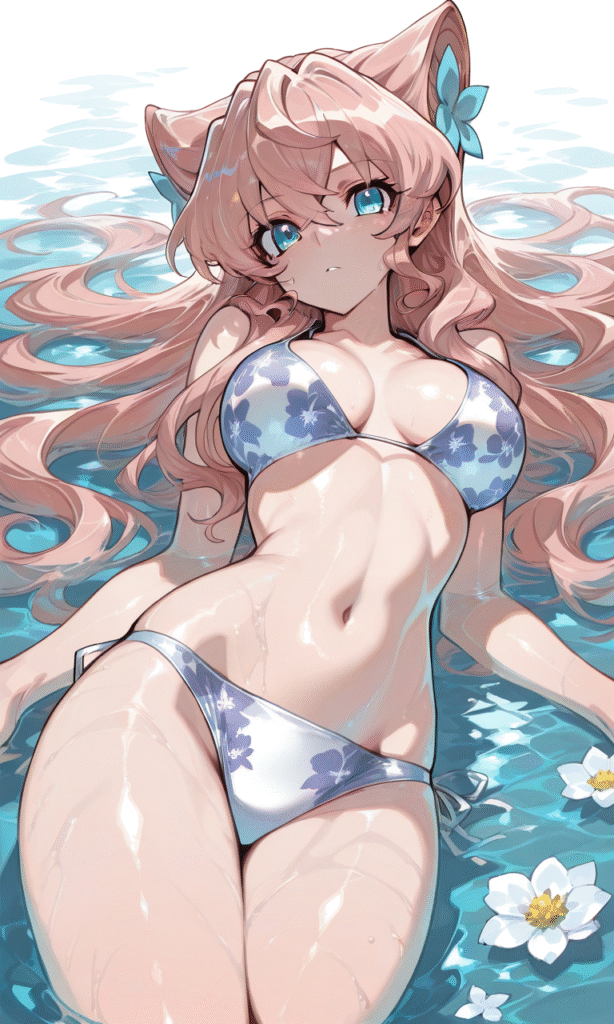PixAI【Shiitake-Mix】Maria Cadenzavna Eve(SYMPHOGEAR),ennui,Floral pattern bikini,lying,Flowers laid out,water,partially submerged,cowboy shot,simplebackground,white background, masterpiece,high quality,shiny skin, shiny,tokiame,((4k,8k,Ultra HD)),((Masterpiece :1.2)),((Best quality :1.2)),((Detailed :1.5)),((Detailed background :1.5)),Mblanc,cinematic lighting , cinematic angle, soft light , color detail, backlighting, Depth of field, long exposure, light steps, intricate colors, vibrant colors,