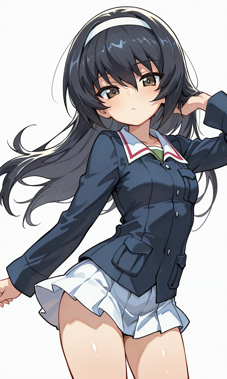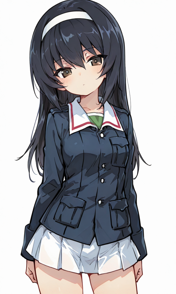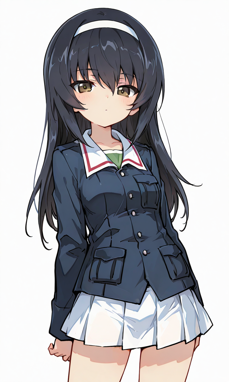 PixAI【Shiitake-Mix】reizei mako (girls und panzer),little girl,solo,ooarai military uniform, cowboy shot,simplebackground,white background, masterpiece,high quality, looking at viewer, high resolution,