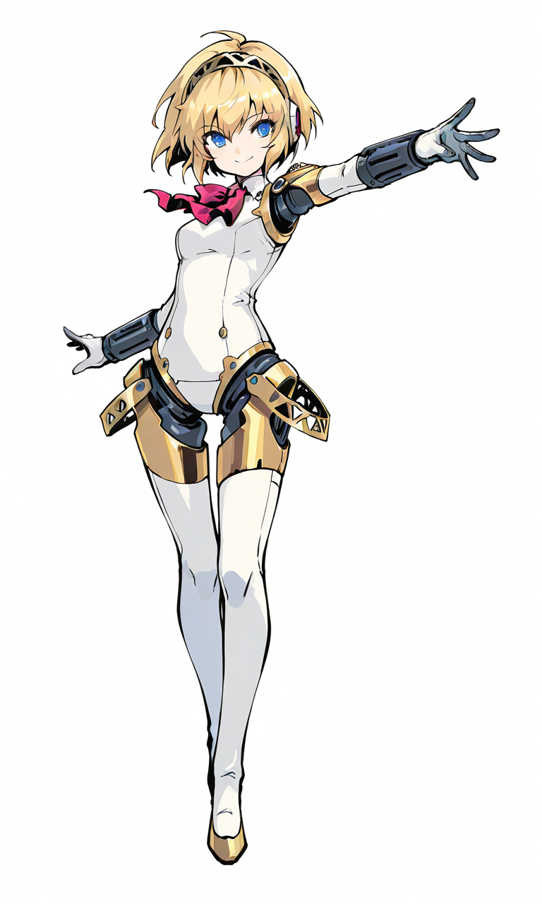 aegis (persona),smile, full body,dynamic pose, simplebackground,white background, masterpiece,high quality, high resolution ,tokiame