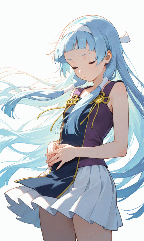 kannagi, nagi, closed eyes, cowboy shot, simple background, white background, masterpiece, high quality, high resolution, 4k, 8k, ultra hd, detailed, detailed background, cinematic lighting, cinematic angle, soft light, color detail, backlighting, depth of field, long exposure, light steps, intricate colors, vibrant colors