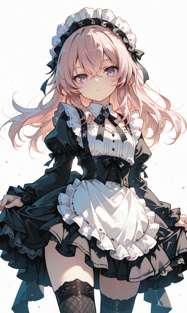 inui sajuna, sGothic Lolita, white collar, lace thighhighs, cowboy shot, simple background, white background, masterpiece, high quality, high resolution, tokiame, Fantasy Scene, hyper-detailed, high contrast, depth of field, ray tracing, best lighting, cinematic composition, beautiful face, beautiful eyes, sharp focus, (masterpiece:1.2), (best quality:1.2), (very aesthetic:1.2), (absurdres:1.2), detailed background