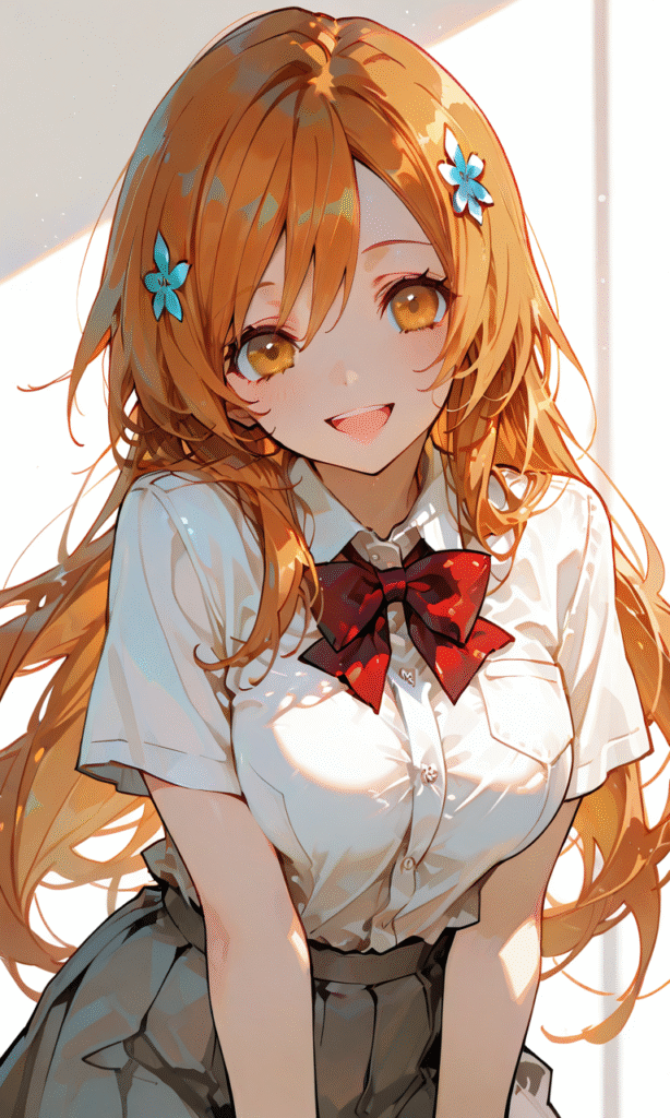 PixAI【Shiitake-Mix】inoue orihime,dress shirt, short sleeves, red bowtie, gray skirt,smile,open mouth, cowboy shot,simplebackground,white background, masterpiece,high quality, high resolution,hyper-detailed, high contrast, depth of field, ray tracing, best lighting, cinematic composition, beautiful face, beautiful eyes, sharp focus, (masterpiece:1.2), (best quality:1.2), (very aesthetic:1.2), (absurdres:1.2), (detailed background),tokiame,hyper-detailed, high contrast, depth of field, ray tracing, best lighting, cinematic composition, beautiful face, beautiful eyes, sharp focus, (masterpiece:1.2), (best quality:1.2), (very aesthetic:1.2), (absurdres:1.2), (detailed background),748cmstyle