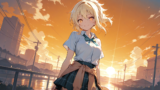 PixAI【Shiitake-Mix】1girl, , blonde hair, long hair, cat ears, looking at viewer, cowboy shot, halo, little wings,holding popcorn, sitting,movie theater, dark background,looking away, masterpiece, simple background, high quality, sailor dress, short sleeves,tokiame, Fantasy Scene, ,cinematic lighting, cinematic angle, soft light, color detail, backlighting, Depth of field, long exposure, light steps, intricate colors, vibrant colors