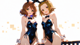 AI 8/21 HAPPY BIRTHDAY 田井中律(けいおん!)&黄前久美子(響け!ユーフォニアム)/バニーガール PixAI【Shiitake-Mix】2girls,tainaka ritsu, oumae kumiko, smile,open mouth, bunny girl,cowboy shot,simplebackground,wh... 2025.10.08 AIHAPPY BIRTHDAY