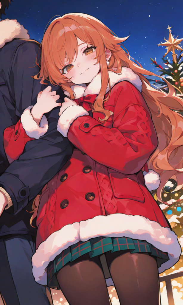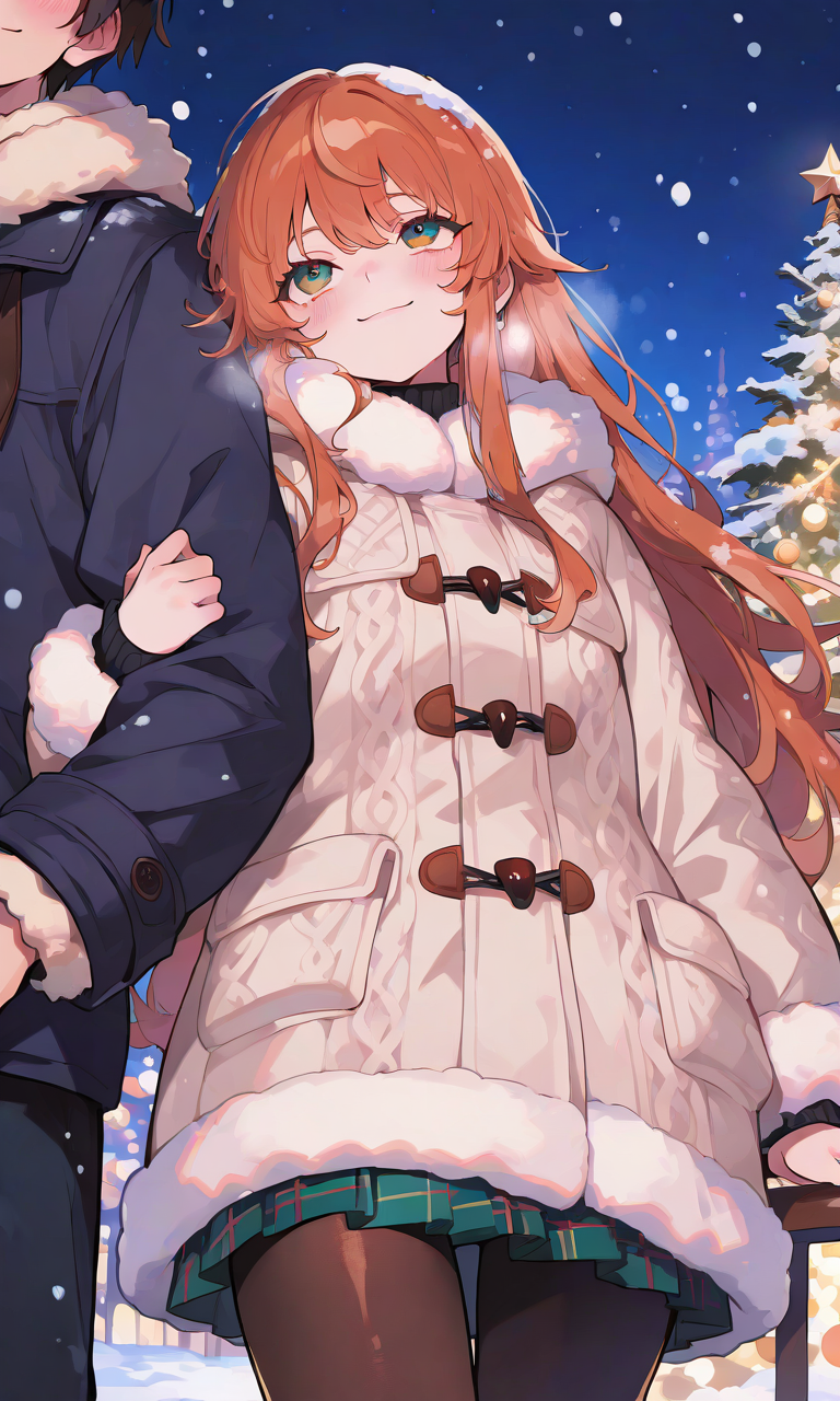 PixAI【Shiitake-Mix】1girl, 1boy, winter clothes, pantyhose, no hat, cowboy shot, smile, another’s arm lock, christmas, night, bless, snowing, looking up, masterpiece, high resolution, high quality, high-res, 748cmstyle, neon pop art style, yume335 style, (masterpiece), Shining Style Art, masterpiece, best quality, very aesthetic, highres, absurdres