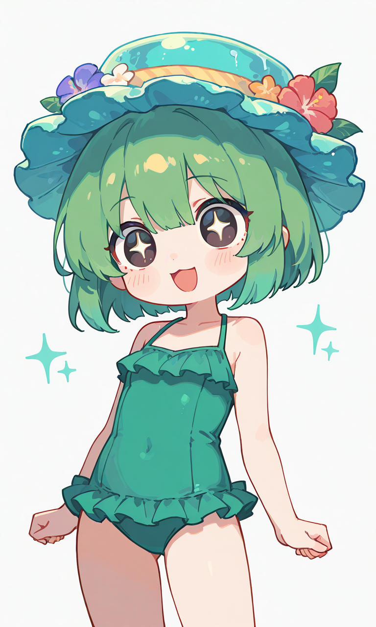 Kappa girl,((solo)),bob cut,shampoo hat, green swimsuit, smile,open mouth, cowboy shot,simplebackground,white background, masterpiece,high quality, high resolution,tokiame, Fantasy Scene, ,chibi, big_head, small_body, large_eyes, blush, simple_lines, bright_colors, simple_colors, cuteKappa girl,((solo)),bob cut,shampoo hat, green swimsuit, smile,open mouth, cowboy shot,simplebackground,white background, masterpiece,high quality, high resolution,tokiame, Fantasy Scene, ,chibi, big_head, small_body, large_eyes, blush, simple_lines, bright_colors, simple_colors, cute