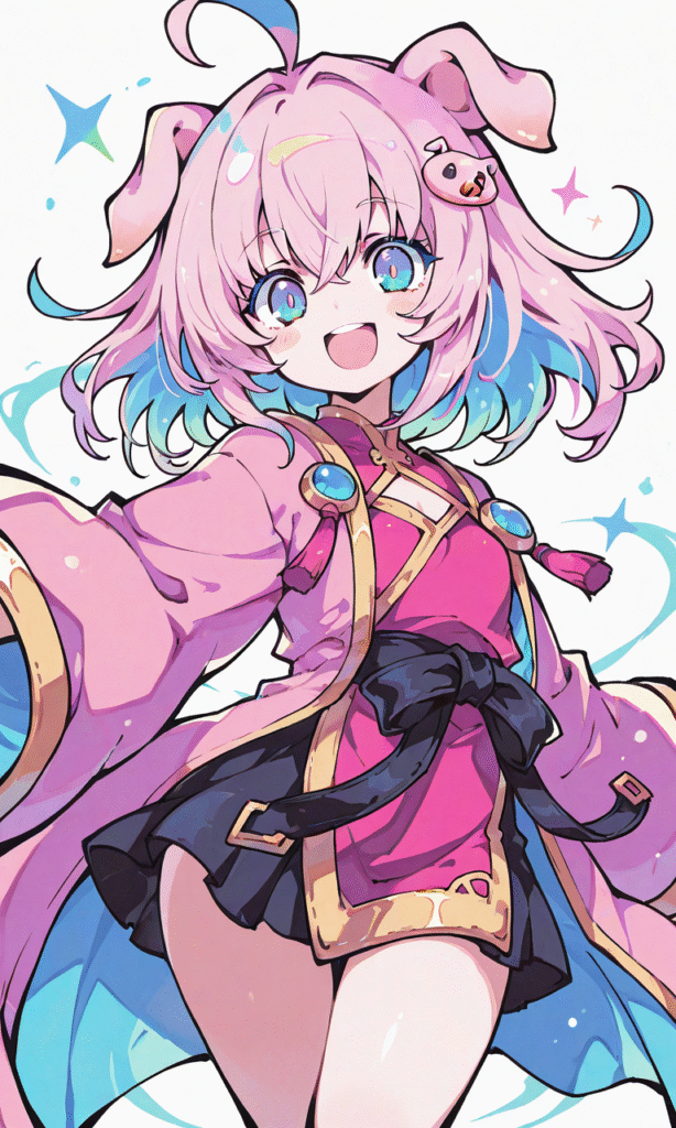 pig(animal),solo, smile,open mouth, cowboy shot,simplebackground,white background, masterpiece,high quality, high resolution,neon pop art style,tokiame, Fantasy Scene,