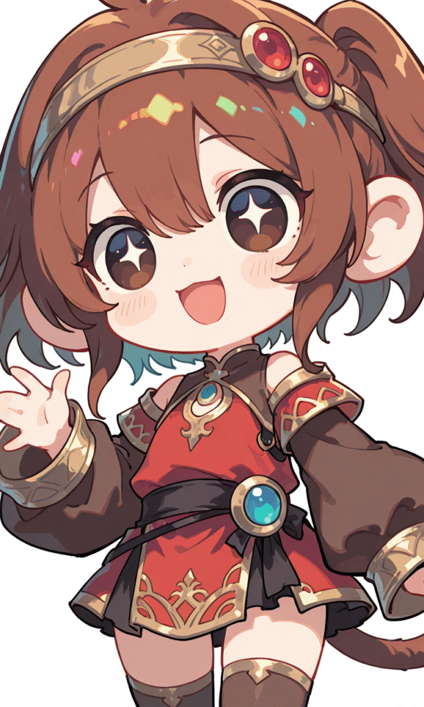 monkey girl, ,solo,brown hair, smile,open mouth, cowboy shot,simplebackground,white background, masterpiece,high quality, high resolution, Fantasy Scene,tokiame, Fantasy Scene, ,chibi, big_head, small_body, large_eyes, blush, simple_lines, bright_colors, simple_colors, cutemonkey girl, ,solo,brown hair, smile,open mouth, cowboy shot,simplebackground,white background, masterpiece,high quality, high resolution, Fantasy Scene,tokiame, Fantasy Scene, ,chibi, big_head, small_body, large_eyes, blush, simple_lines, bright_colors, simple_colors, cute