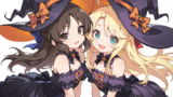PixAI【Shiitake-Mix】jack-o’-lantern print moon, big moon, moon focus, ghost, dancing, from below, witch, black cloak, cowboy shot, night sky, halloween party, masterpiece, spooky atmosphere, glowing eyes, floating, supernatural, festive, high resolution, high quality, tokiame, ((4k,8k,Ultra HD)), ((Masterpiece :1.2)), ((Best quality :1.2)), ((Detailed :1.5)), ((Detailed background :1.5)), Fantasy Scene, Chibi, white outline
