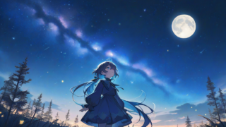 PixAI【Shiitake-Mix】little girl,cowboy shot,looking up, Huge stars shining in the swirling night sky, bright pulsating g...