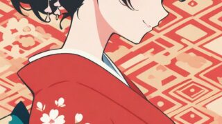 PixAI【Shiitake-Mix】1girl, black hair, hair up, kanzashi, red kimono, fur shawl, cowboy shot,straight-on, torii, closed ...