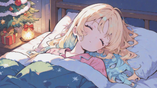 PixAI【Shiitake-Mix】1girl, little girl, blonde hair, pink pajamas, masterpiece, sleeping in bed, lying, on back, christm...