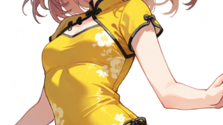 PixAI【Shiitake-Mix】Wang Liu Mei,red china dress,sleeveless, elbow gloves, smile, cowboy shot,simplebackground,white bac...