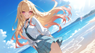 AI 喜多川 海夢/乾 心寿(その着せ替え人形は恋をする) PixAI【Shiitake-Mix】kitagawa marin, school uniform, summer,beach,Water's Edge,smile,cowboy shot,heavy lens flare,high co... 2025.09.08 AI