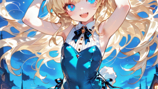 PixAI【Shiitake-Mix】alice, loli, solo, blue bunnygirl suit, sleeveless, white thighhighs, rabbit pose, looking at vi...