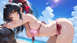 AI 7/28 HAPPY BIRTHDAY 真宮寺さくら(サクラ大戦) PixAI【Shiitake-Mix】shinguuji sakura,ponytail,yellow eyes, smile,pink bikini(sakura),beach,leaning forward,looki... 2025.09.15 AIHAPPY BIRTHDAY