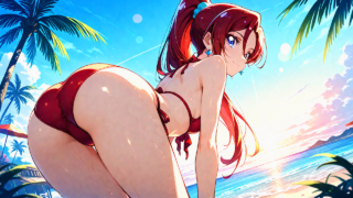 AI 滝沢 あすか(トロピカル~ジュ!プリキュア) PixAI【Featureless Mix Illustrious】takizawa asuka(precure),smile,long ponytail,red bikini,leaning forward,looking back, ... 2025.09.04 AI