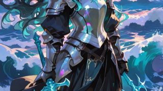 PixAI【Shiitake-Mix】1girl, ((sword focus)), female warrior, fantasy metal armor, japanese sailor uniform, lightweight si...