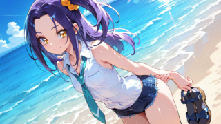 AI 黒川 エレン(スイートプリキュア♪) PixAI【Shiitake-Mix】kurokawa eren(precure),solo,side ponytail,yellow eyes, smile,dress shirt,long shirt,sleeveless,neckt... 2025.09.27 AI