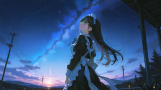 AI maid PixAI【Shiitake-Mix】girl,black hair,long hair,straight hair,maid,glasses,cowboy shot, look up,star night,star (sky), ama... 2025.10.01 AI