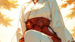 PixAI【Shiitake-Mix】1girl, oni, solo, black hair, short hair, blunt bangs, amber eyes, tareme, miko, miniskirt, ...