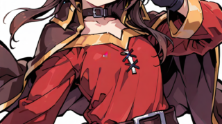 AI めぐみん(この素晴らしい世界に祝福を!) PixAI【Shiitake-Mix】megumin,serious,open mouth,eyepatch,dynamic pose,v, cowboy shot,simplebackground,white background, m... 2025.10.02 AI