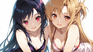 PixAI【Shiitake-Mix】2girls,suzumiya haruhi,izumi konata, black bunnygirl,pantyhose, shoulder-to-shoulder, looking at vie...