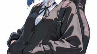 AI 山田 リョウ&喜多 郁代(ぼっち・ざ・ろっく!) PixAI【Shiitake-Mix】yamada ryo,school uniform,long sleeves,black cardigan, pantyhose, carry on back guitar case,looking ... 2025.10.01 AI