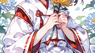 PixAI【Shiitake-Mix】1girl, oni, solo, black hair, short hair, blunt bangs, amber eyes, tareme, miko, miniskirt, white th...