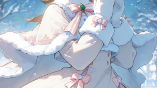 PixAI【Shiitake-Mix】1girl, ichinose minori(precure), blue eyes, glasses, pastel white winter outfit, (((mitten gloves)))...