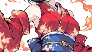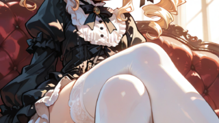 PixAI【Shiitake-Mix】girl,black hair, long hair,ponytail,brown eyes, smile,virgin killer sweater,white sweater, arm up, u...