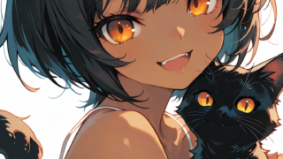 AI 女の子いろいろ(オリジナル) PixAI【Shiitake-Mix】1girl, cat ears, tail, bob cut, messy hair, black hair, amber eyes, tsurime, big eyes, dark skin, sm... 2025.10.22 AI